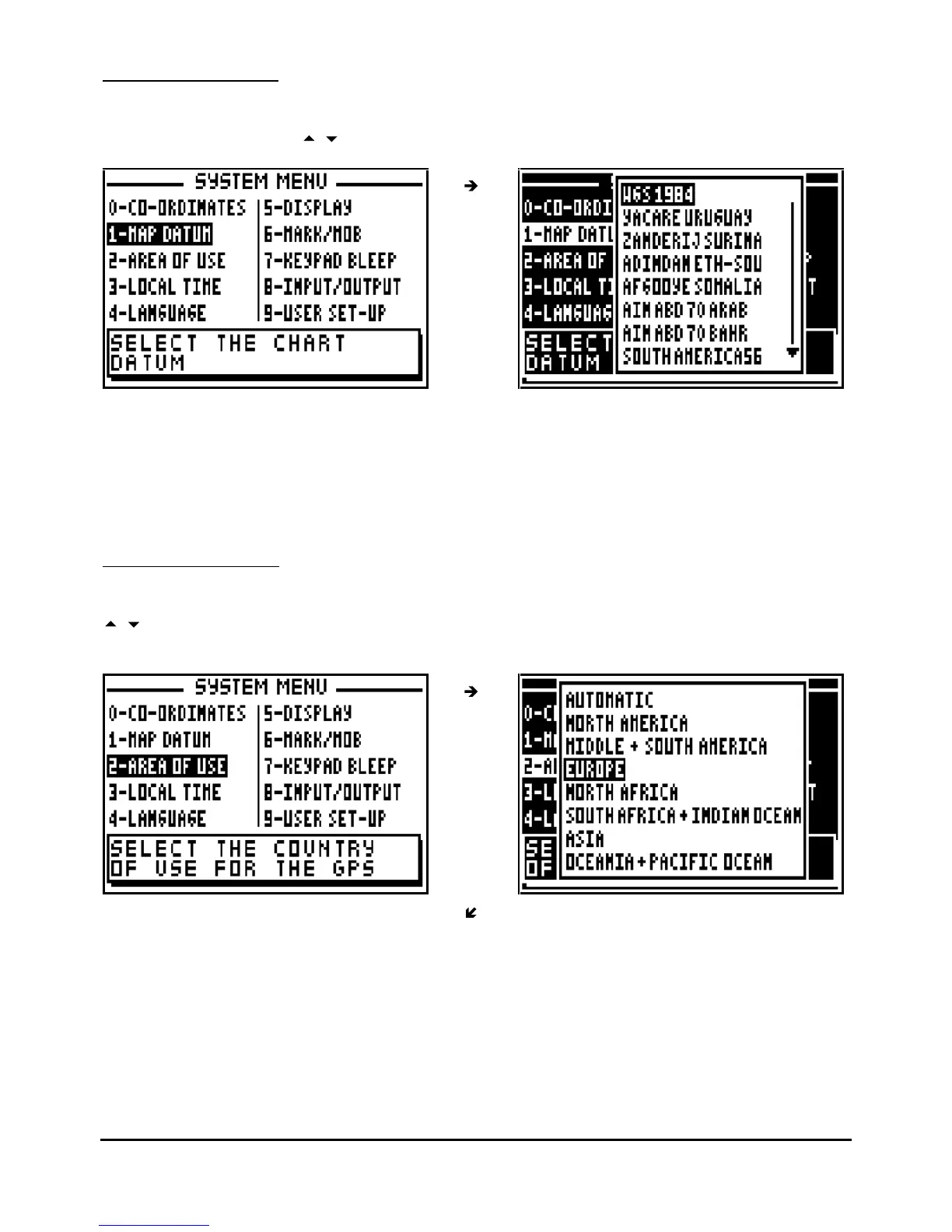 From the SYSTEM MENU, press key 2 (or select 2-AREA OF USE and press