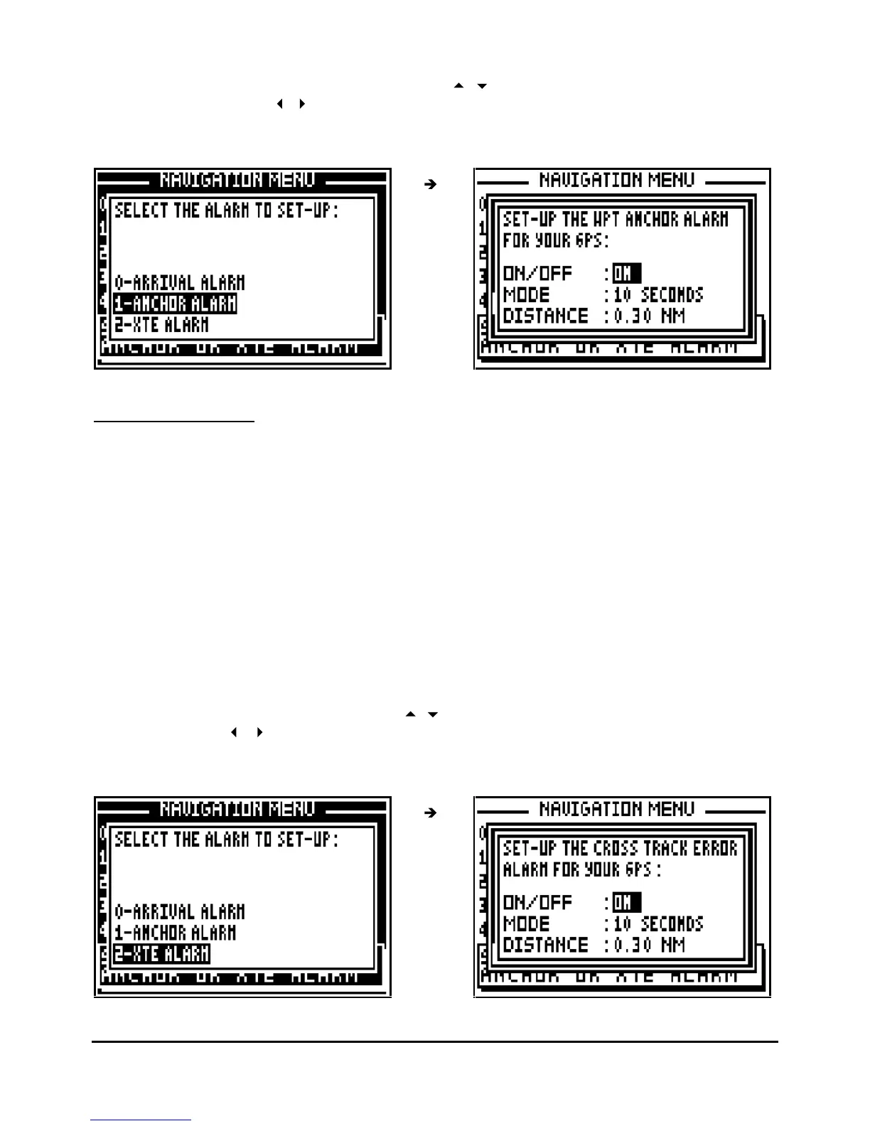 arrow keys to select alarm ON/OFF and mode required. Use the