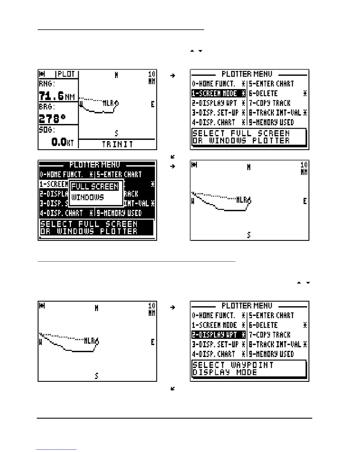 MLR FX412 - Select the Full Screen or Window Mode; Selection of Waypoint Names on Plotter Display