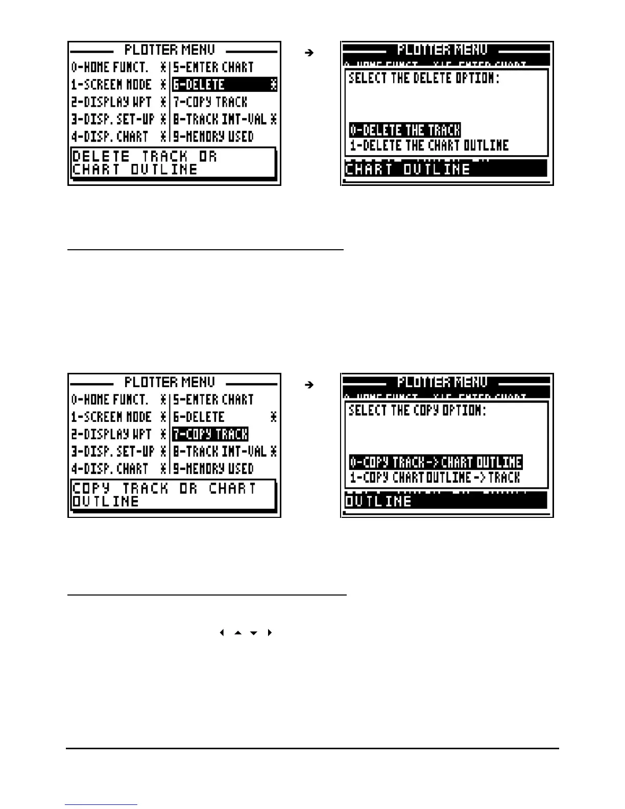 This function allows you to copy your track in the memory of the chart outline or vice versa.