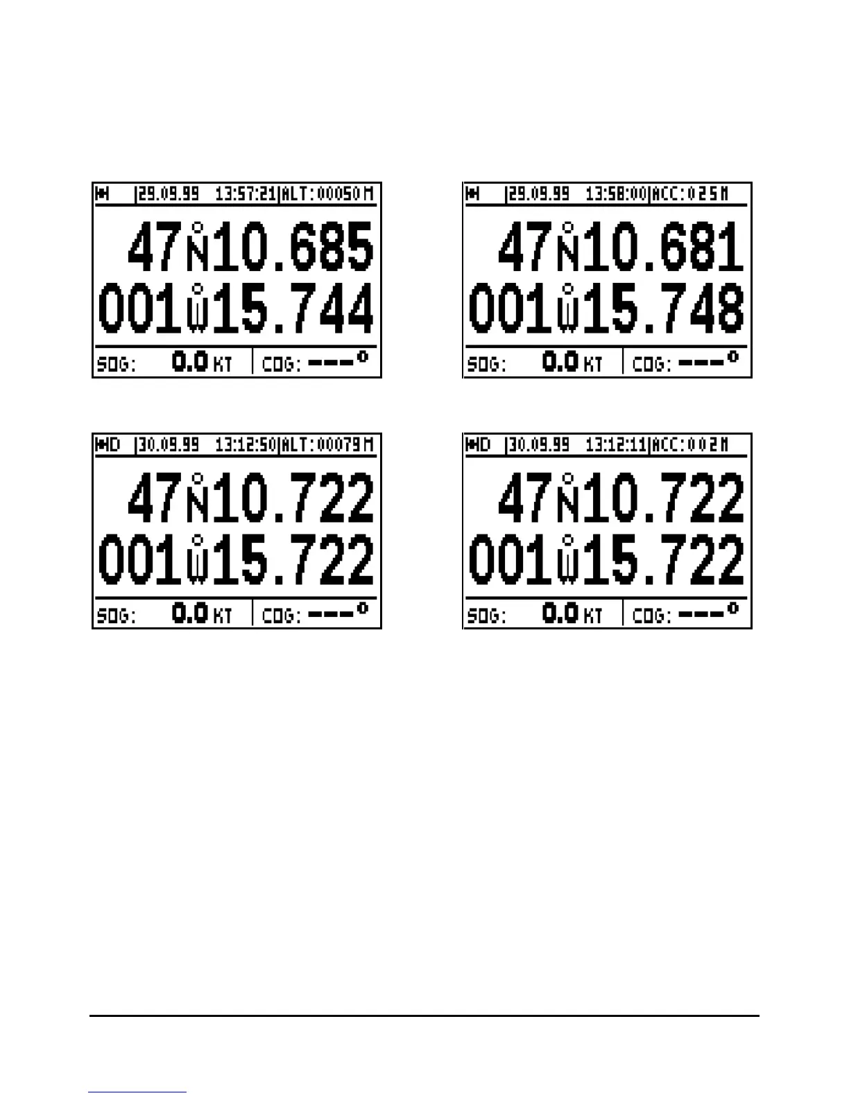 - Your altitude, your accuracy (ACC) or no data, depending on your choice in the