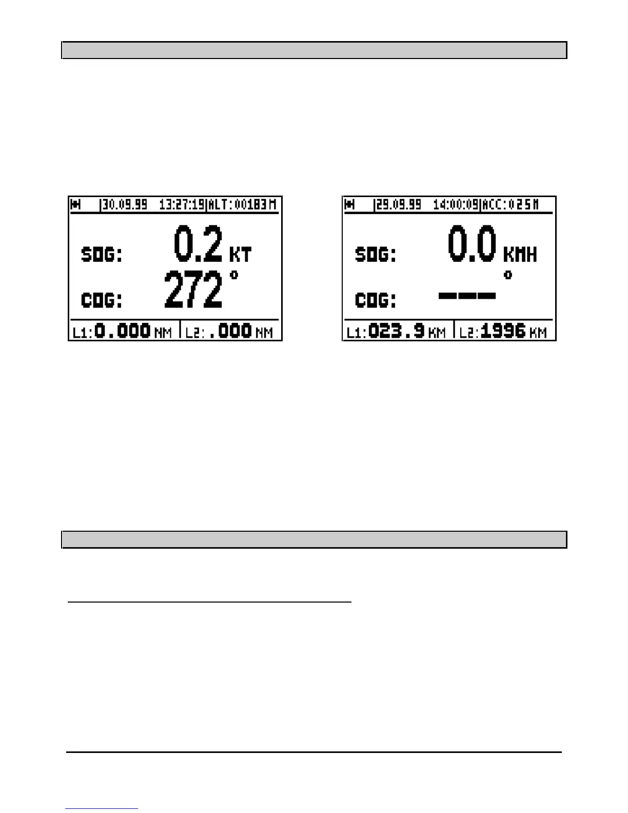 Note: When the speed is zero, the course cannot be calculated and dashes are displayed.
