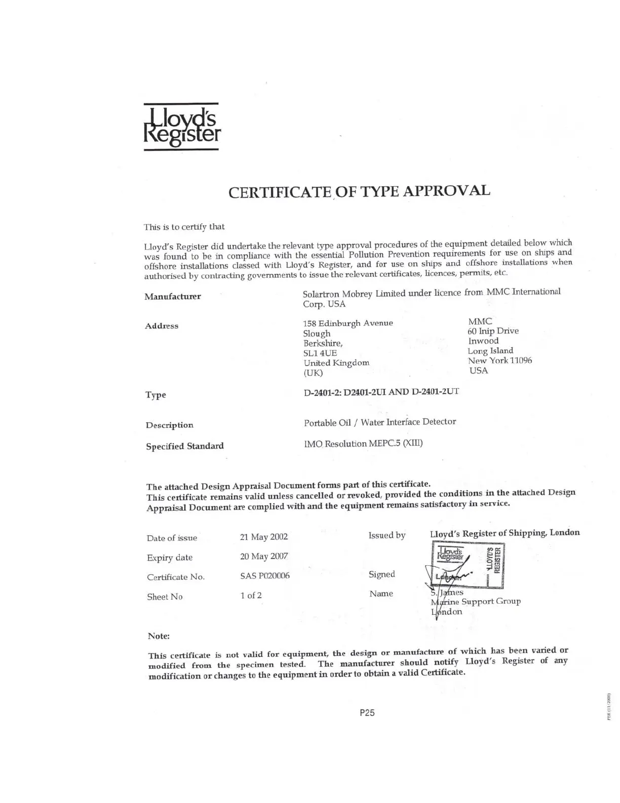 Other manuals for MMC D-2401-2