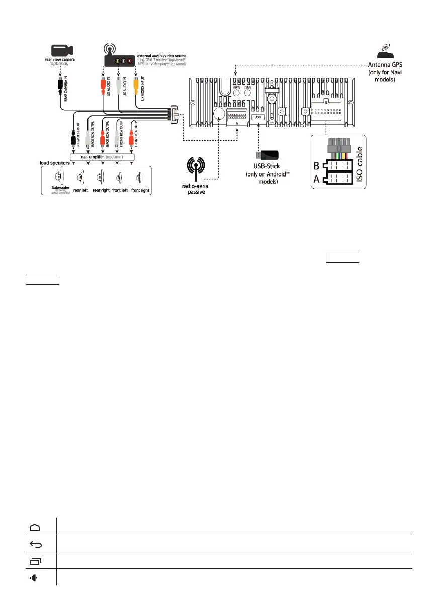 By pressing the MODE button you can change between modes. Radio/Dialer/Music player/Navigation/