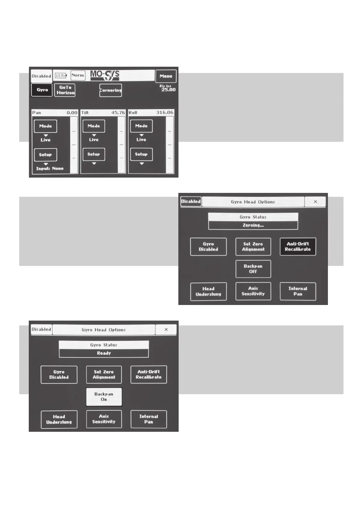 with crane. Pan axis of the head tracks rotation of Pan Gyro,
