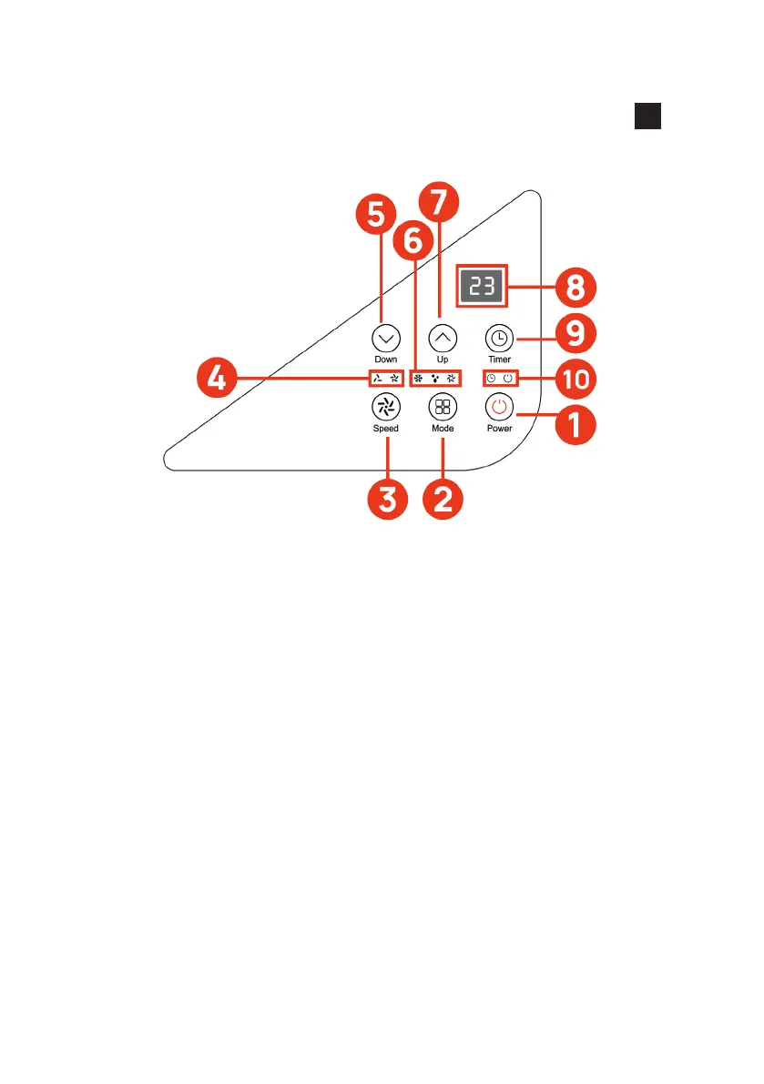 6. MODE-indicator: de modusweergave tussen koelen, ontvochtigen en