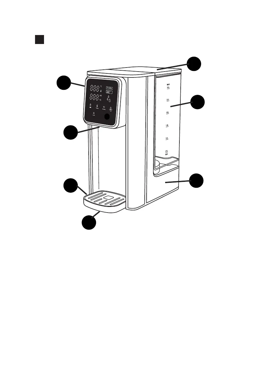 2. Auslauf 6. Abnehmbarer Wasserbehälter