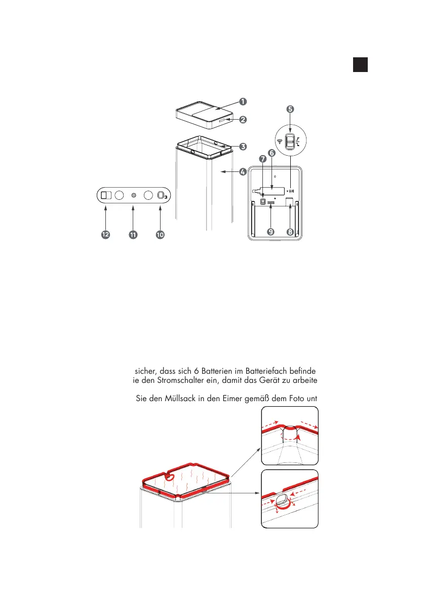 2. Installieren Sie den Müllsack in den Eimer gemäß dem Foto unten.
