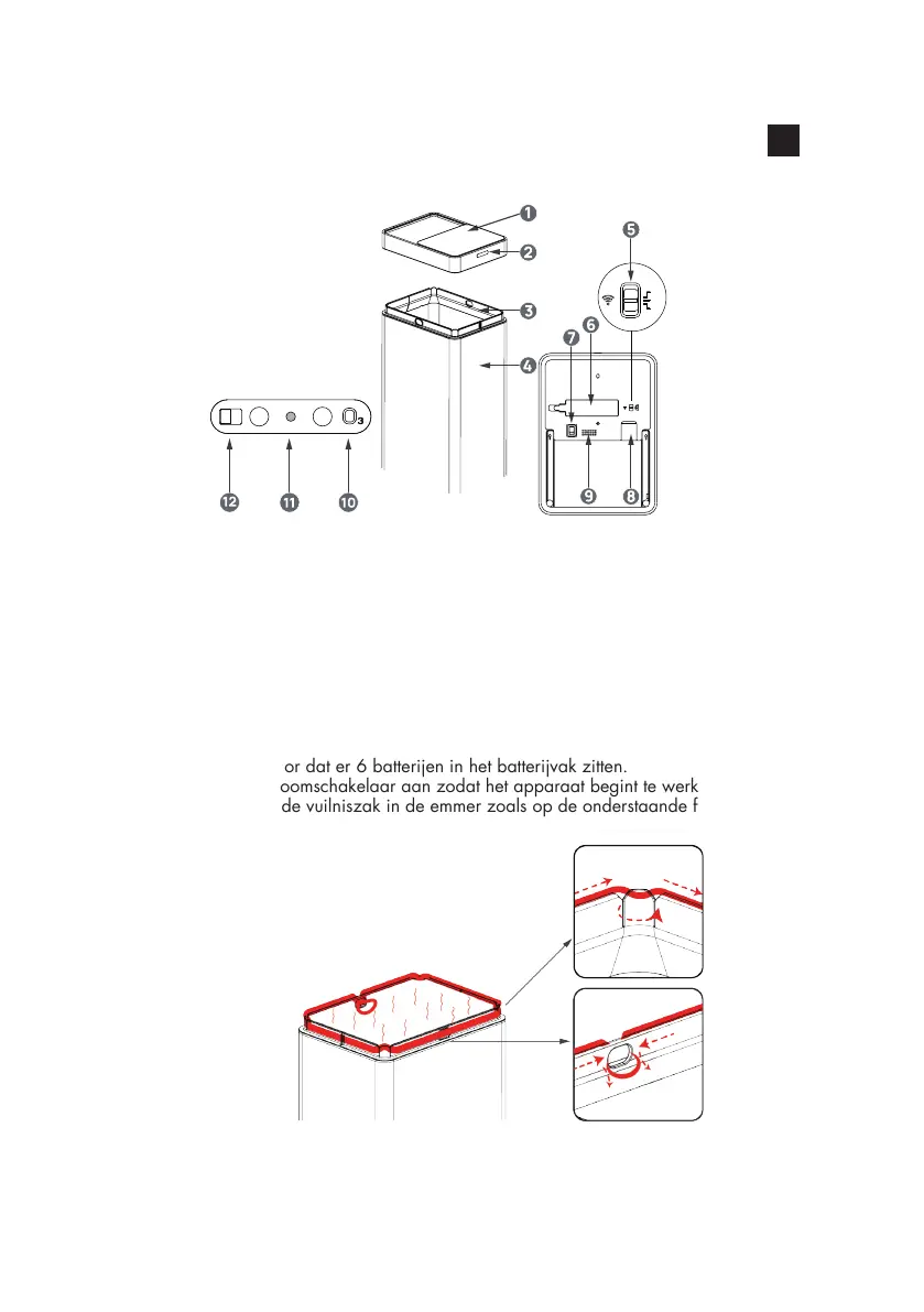 2. Installeer de vuilniszak in de emmer zoals op de onderstaande foto.