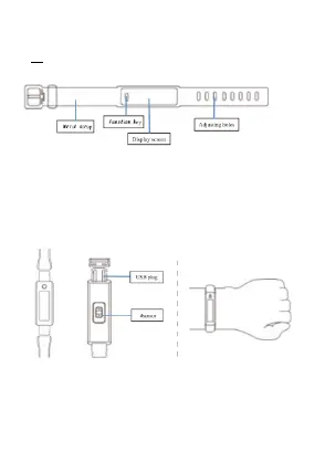 Unplug the strap at both ends of the bracelet. Insert the USB side