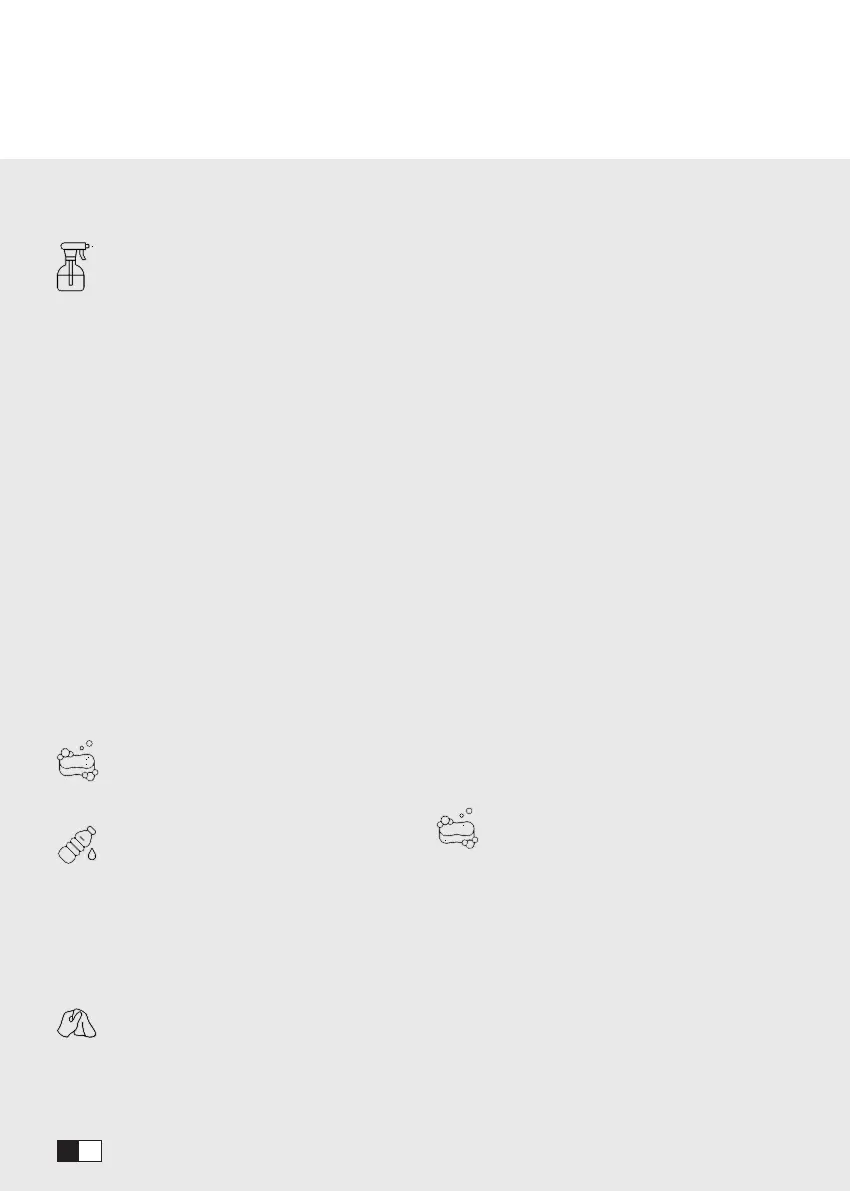 • Utiliser une microfibre légèrement humide avec un produit à vitre de préférence sans alcool pour les taches persistantes puis sécher