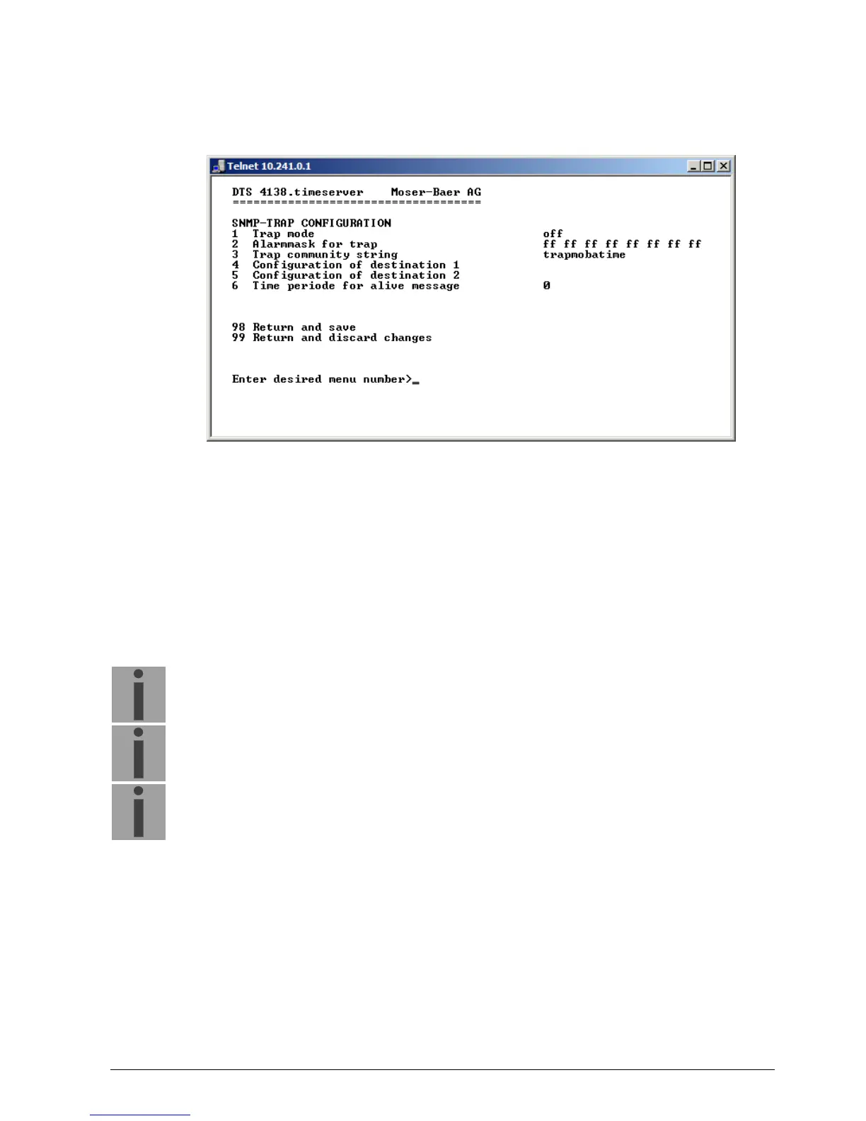 General settings for SNMP can be found in menu ’2. Configuration’
