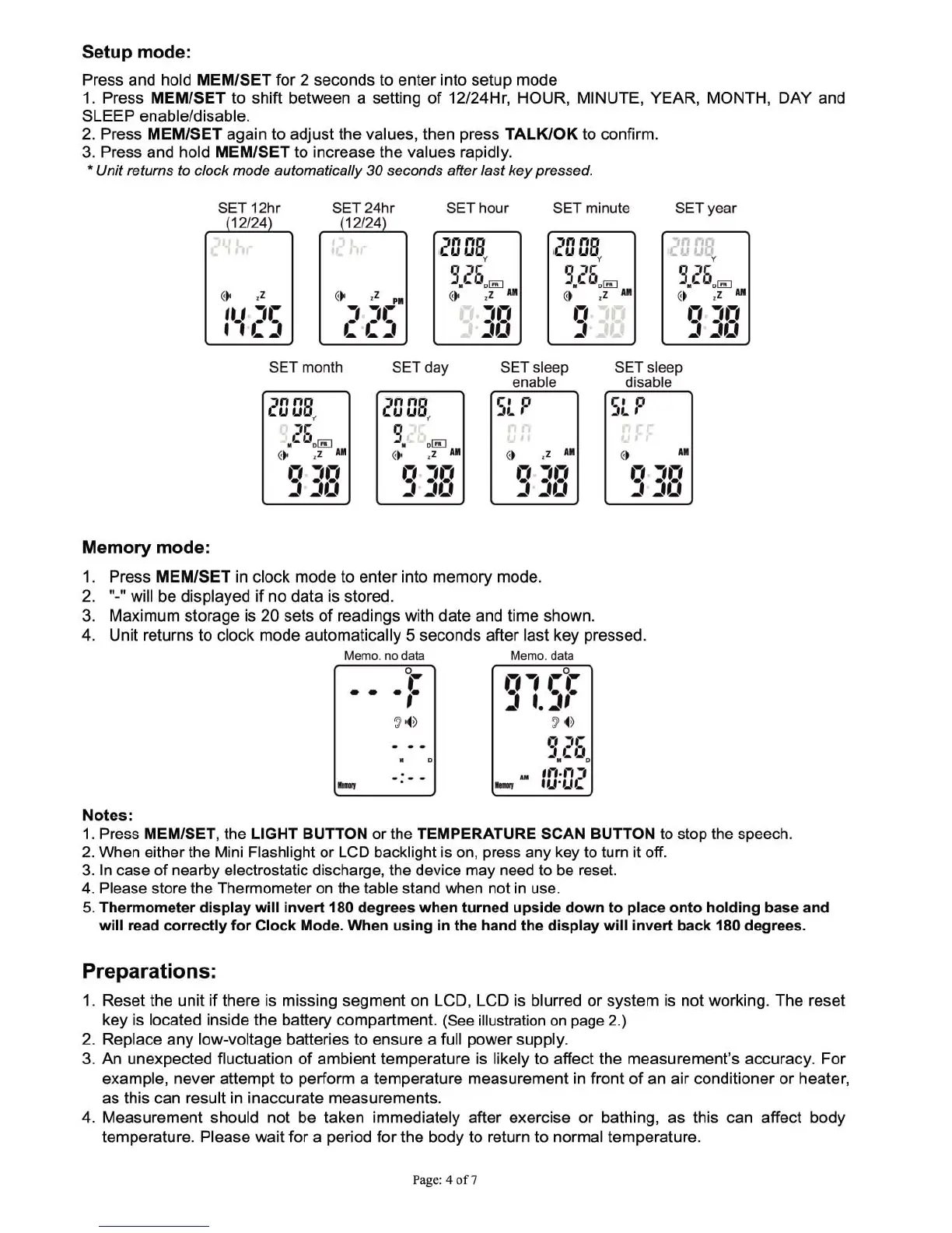 Mobi Technologies 70119 - Setup Mode; Memory Mode; Preparations