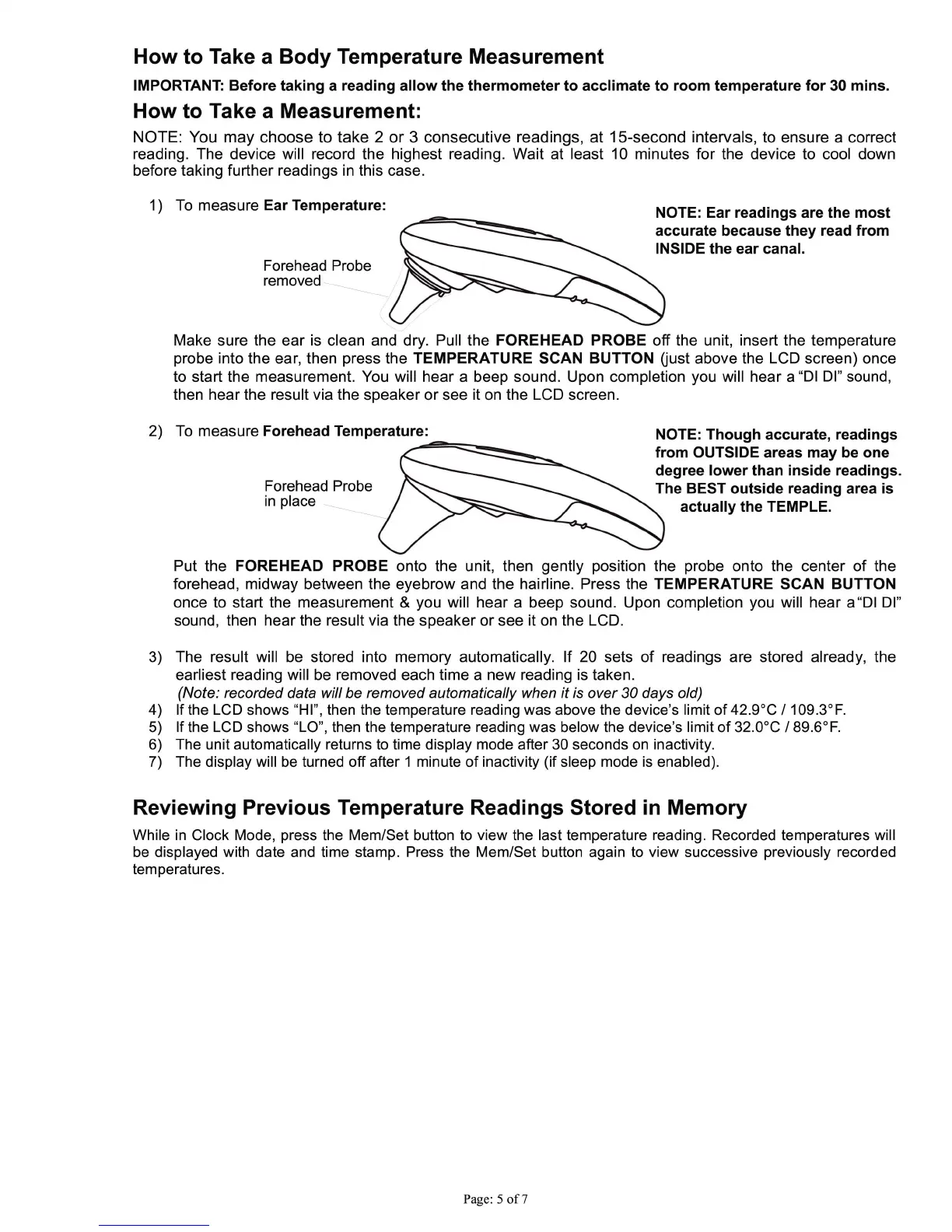Mobi Technologies 70119 - How to Take a Measurement; Reviewing Previous Temperature Readings Stored in Memory