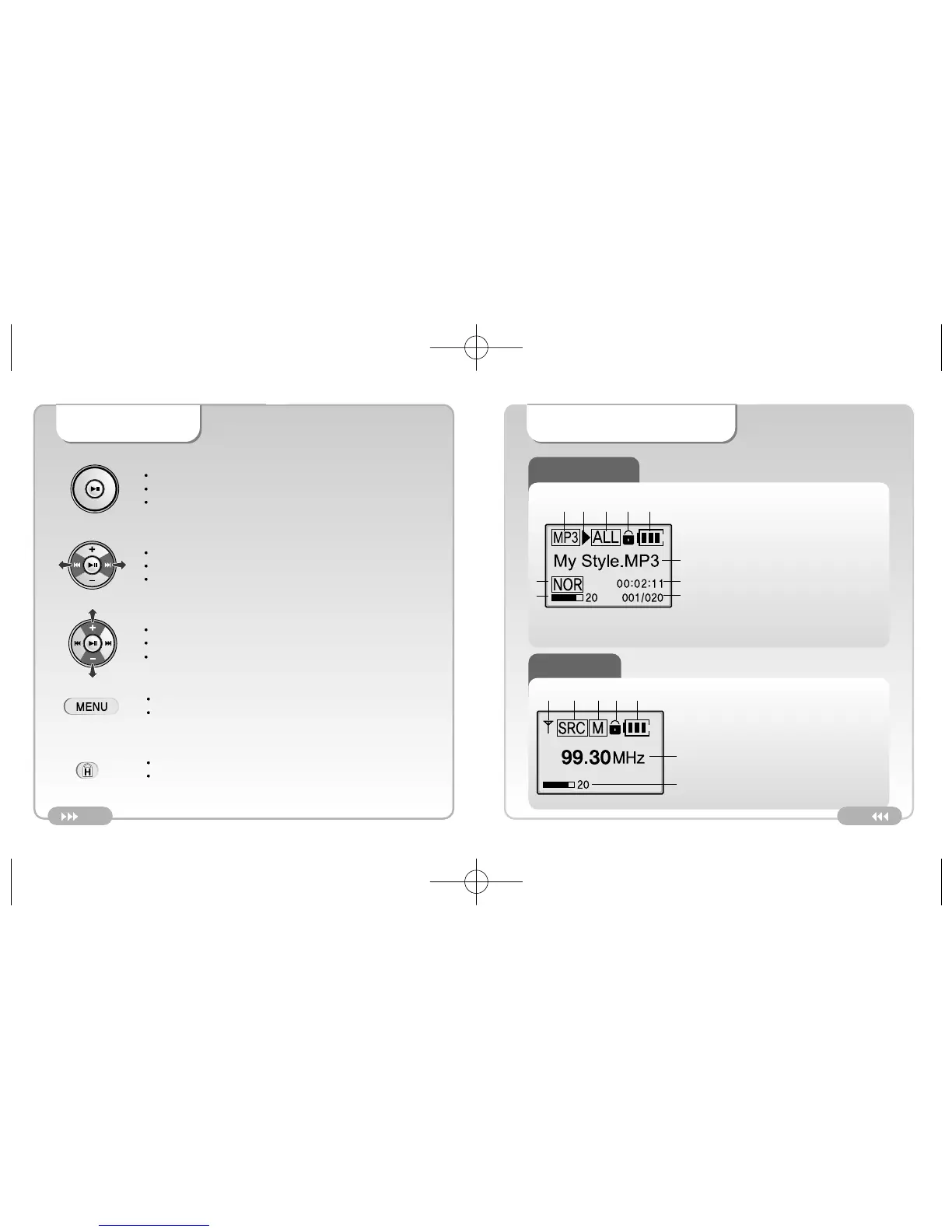B: Displays file status (Play/ Pause)