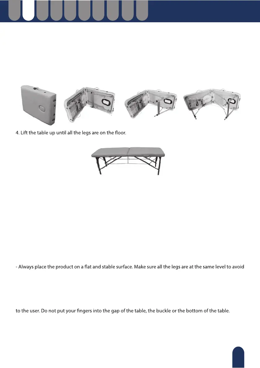 - The table should be folded and unfolded with the help of another person.