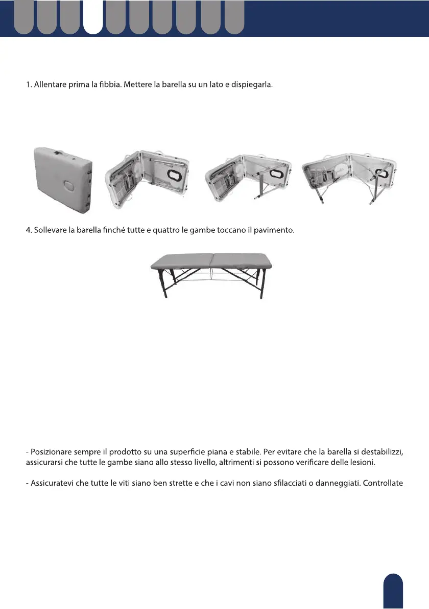 causare gravi lesioni all’utente. Non mettere le dita nell’incavo della barella.