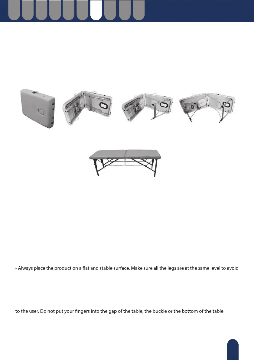 - Do not overload the table beyond the recommended weight limit. This could result in the serious injury