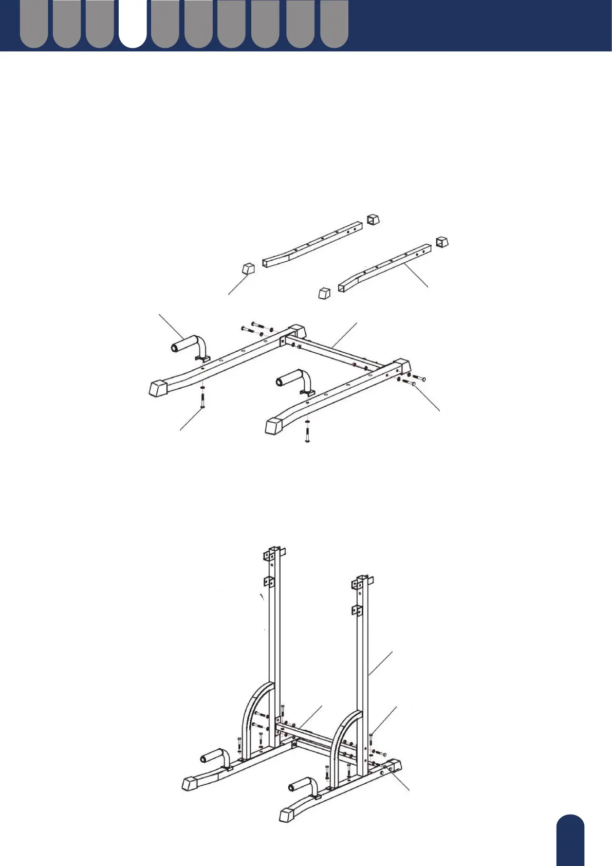 Collegare i tubi principali (B) ai tubi dei piedi (A) con 6 serie di viti combinate (j) - Vite (M10*45) + Rondella