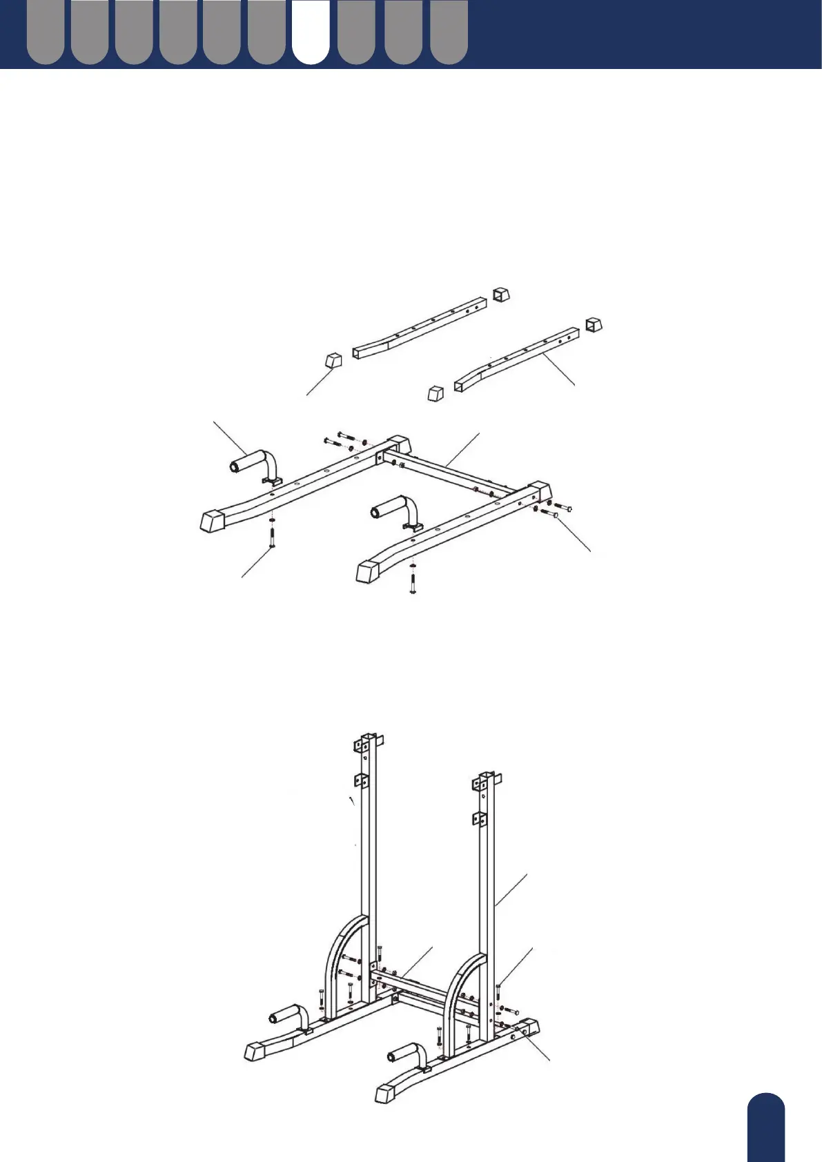 Verbind de hoofdbuizen (B) met de voetbuizen (A) met 6 sets combischroeven (j) - Schroef (M10*45) +
