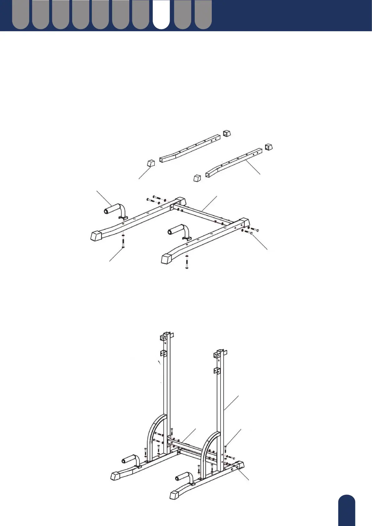 Anslut huvudrören (B) till fotrören (A) med 6 uppsättningar kombinationsskruvar (j) - Skruv (M10*45) + Bricka