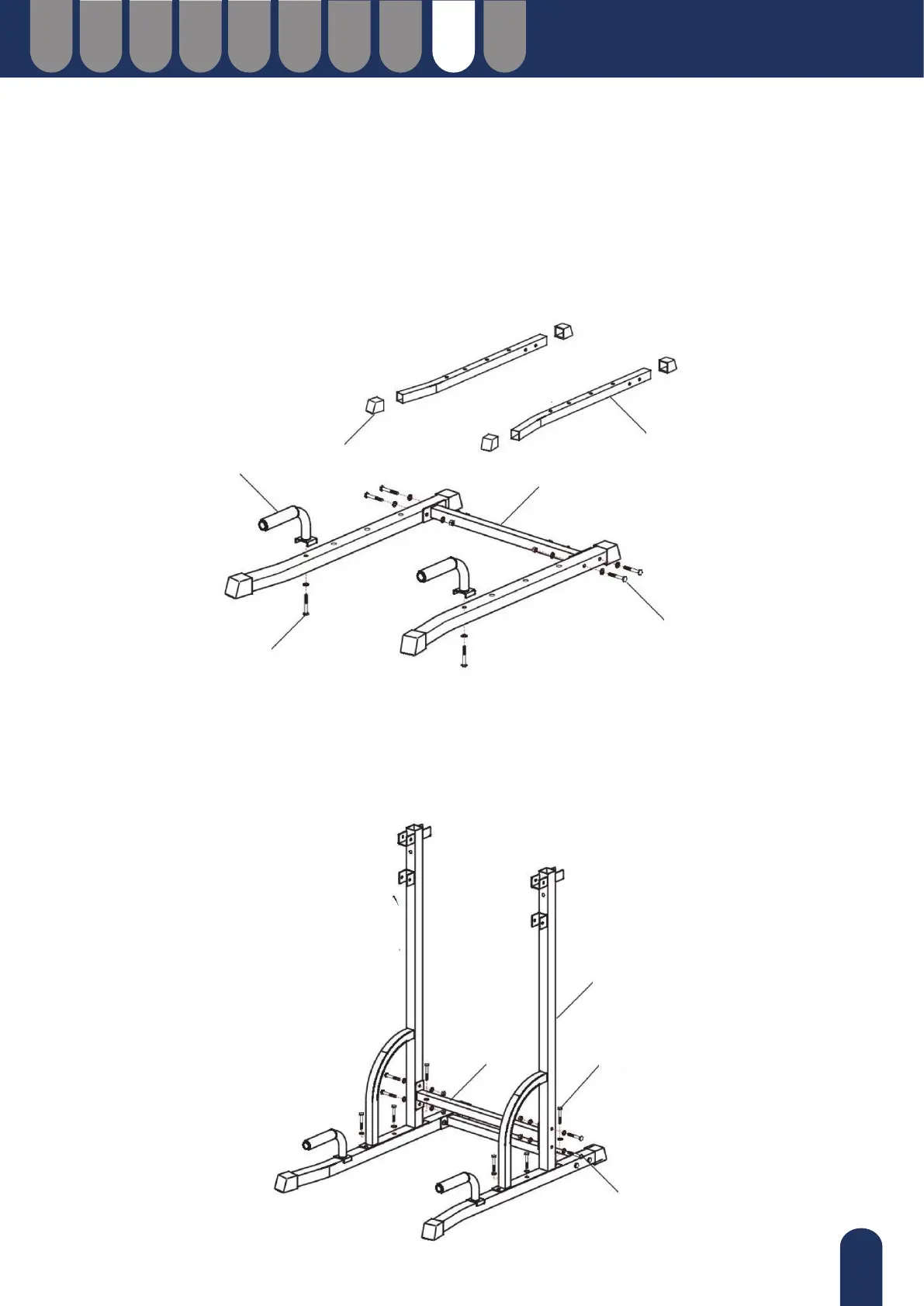 (M10*45) + podkładka (M10). Następnie połącz rurę główną (B) i rurę łączącą (C) za pomocą 4 zestawów
