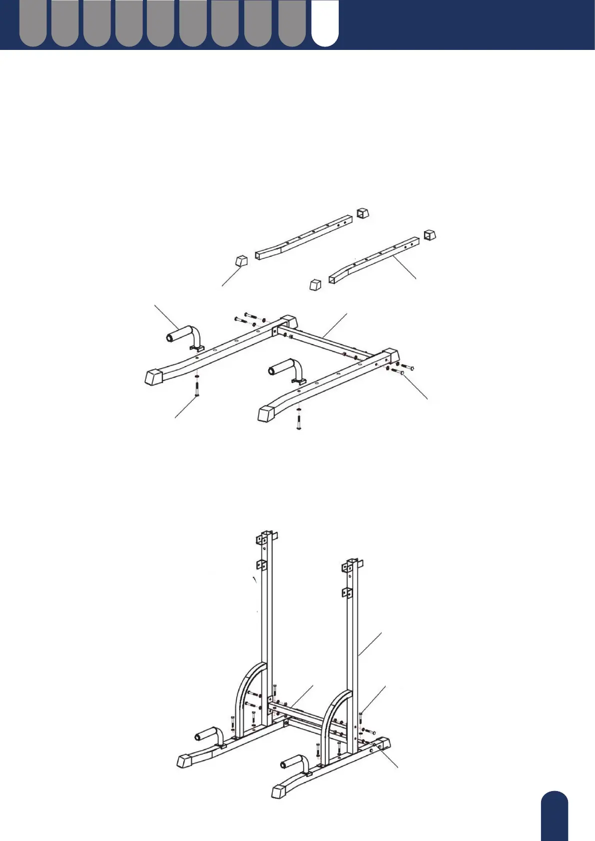 Forbind hovedrørene (B) til fodrørene (A) med 6 sæt kombinationsskruer (j) - Skrue (M10*45) + Skive