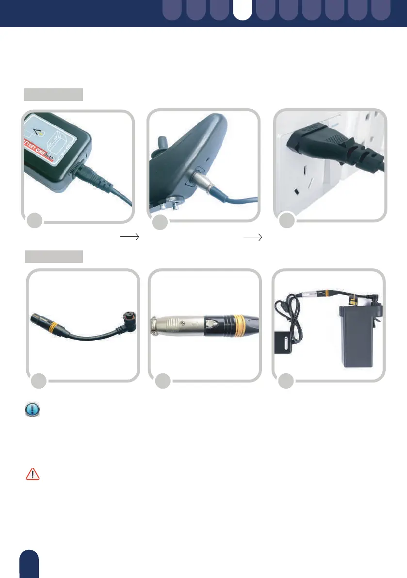 1 Collegare il caricatore 2 Collegare il joystick 3. Collegare alla presa di corrente