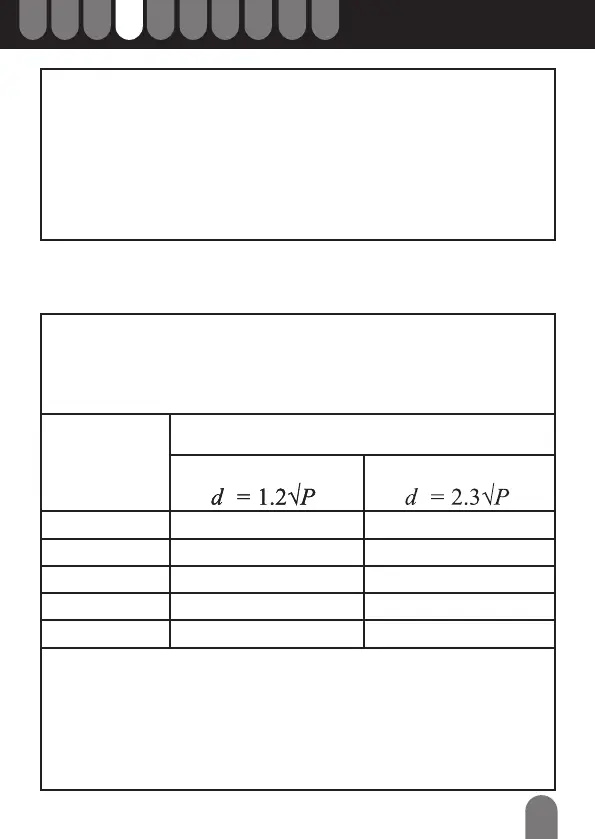 di separazione consigliata d in metri (m) può essere calcolata utilizzando l’equazione