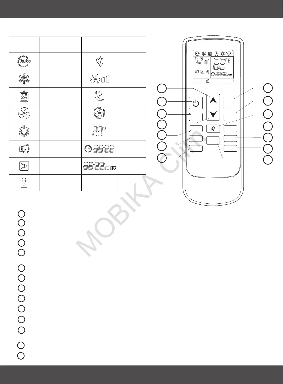 MODE BUTTON: Set up the air conditioner operating mode