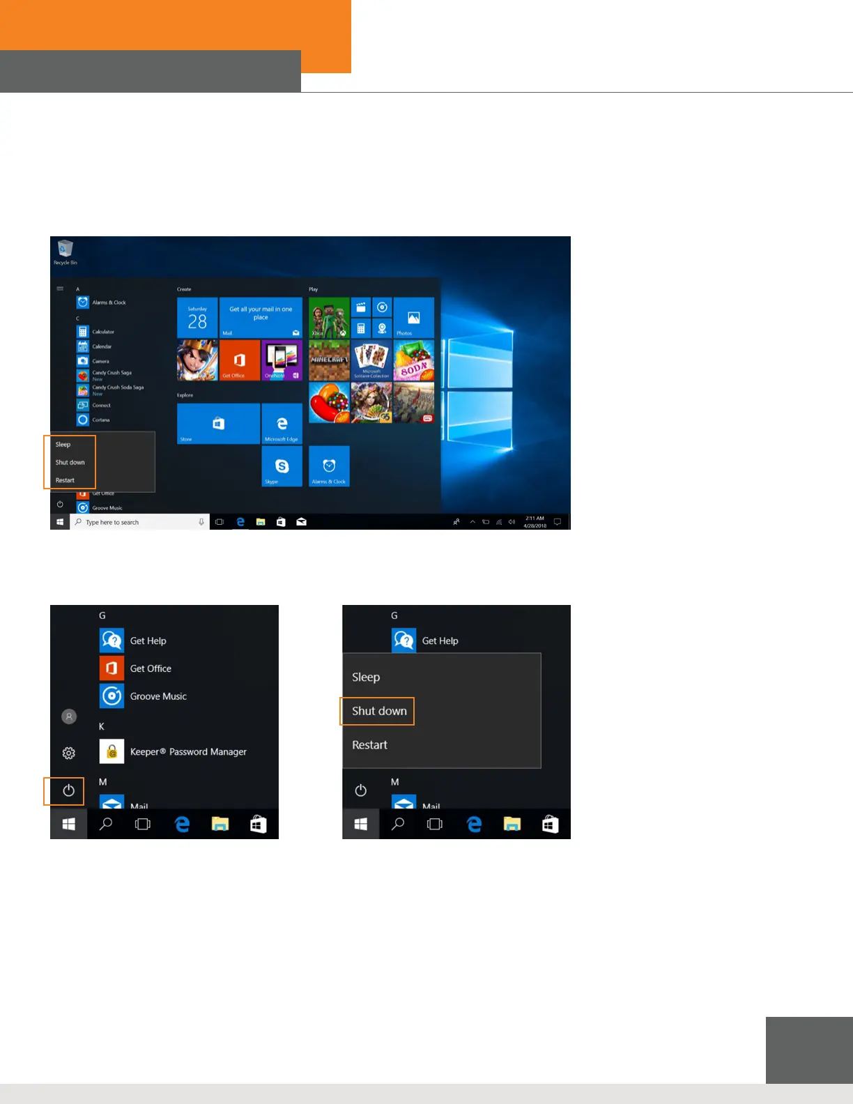 Sleep, Shut Down, Restart