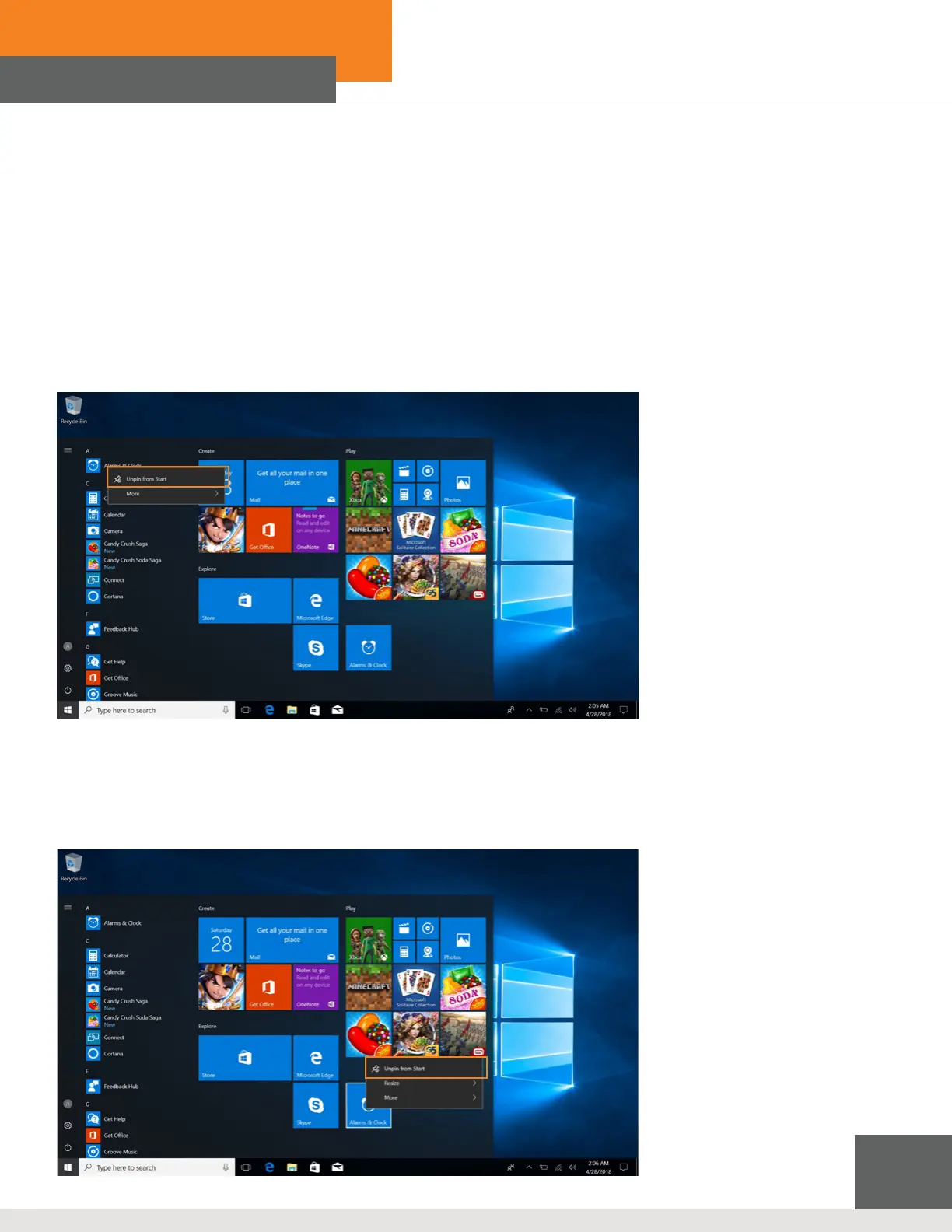 (2) Click the “Unpin from Start”.