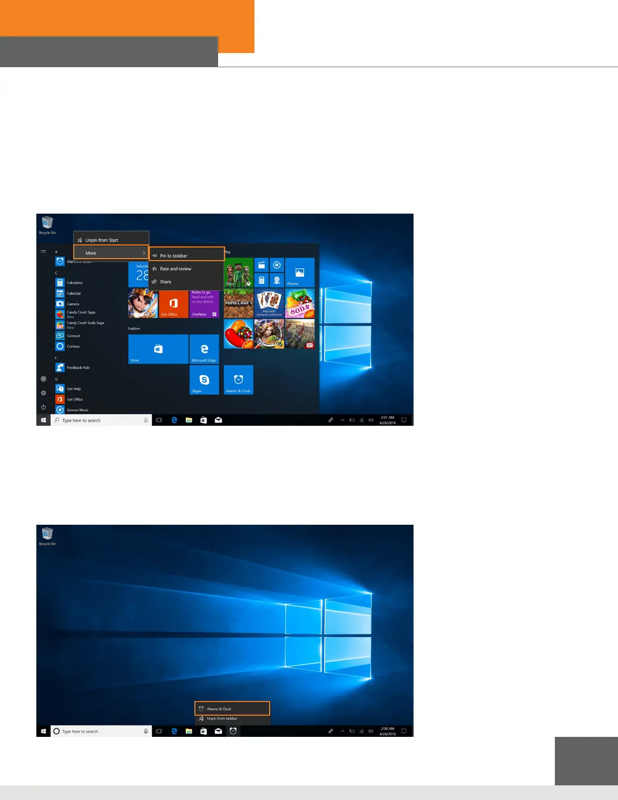 “Pin to Taskbar”. You can also drag the application onto the “start” screen, as follows: