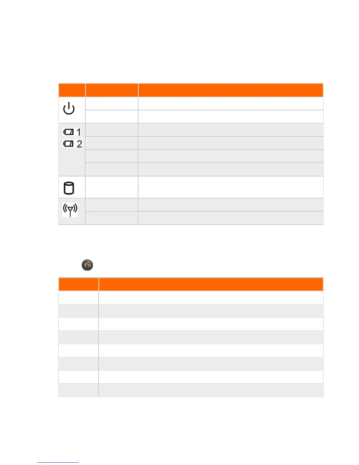 Hold the Fn key while pressing keys listed in this table.