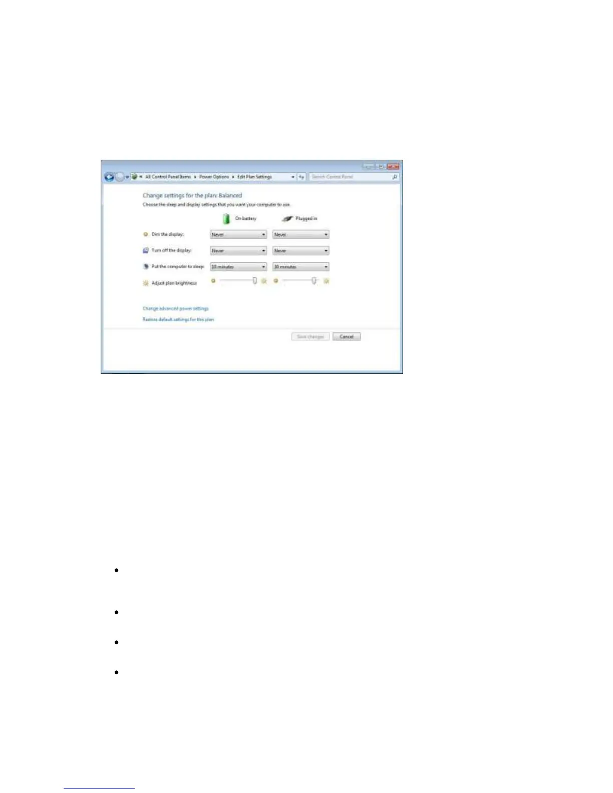 Select Start > Control Panel > Power Options, then click Change plan settings on the power