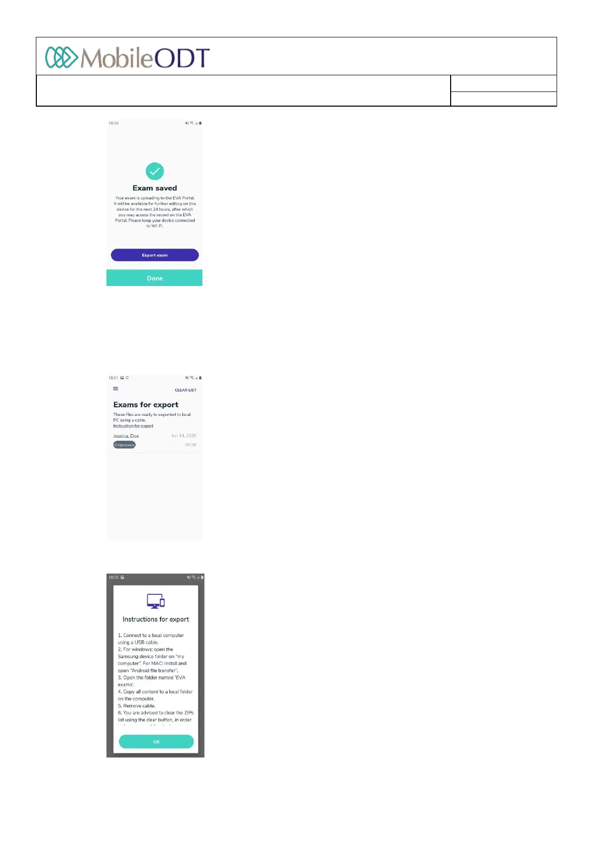 11.17.2. The‘Instructionsforexport’explainwhatshouldbedoneinordertoexporttheexamsfromthedevice
