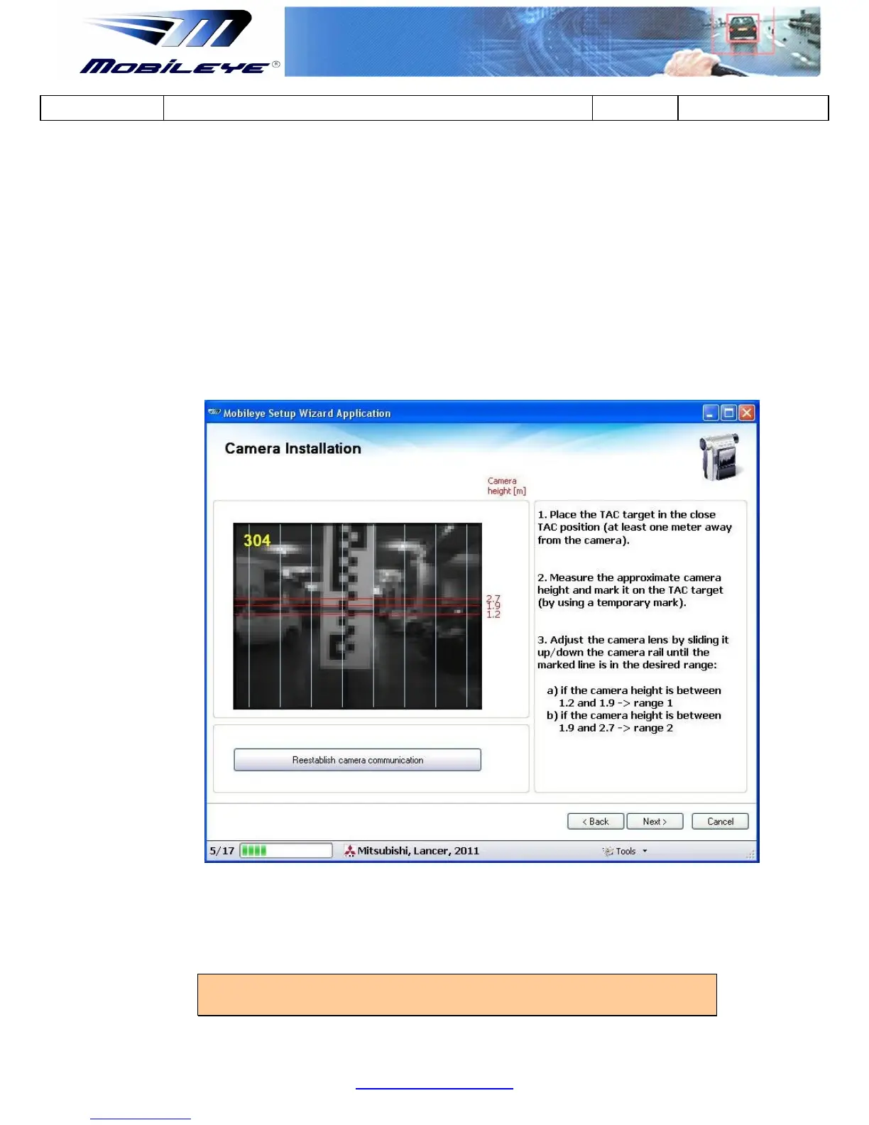 b) If the Camera Height is between 1.9m and 2.7m place the Marked Line