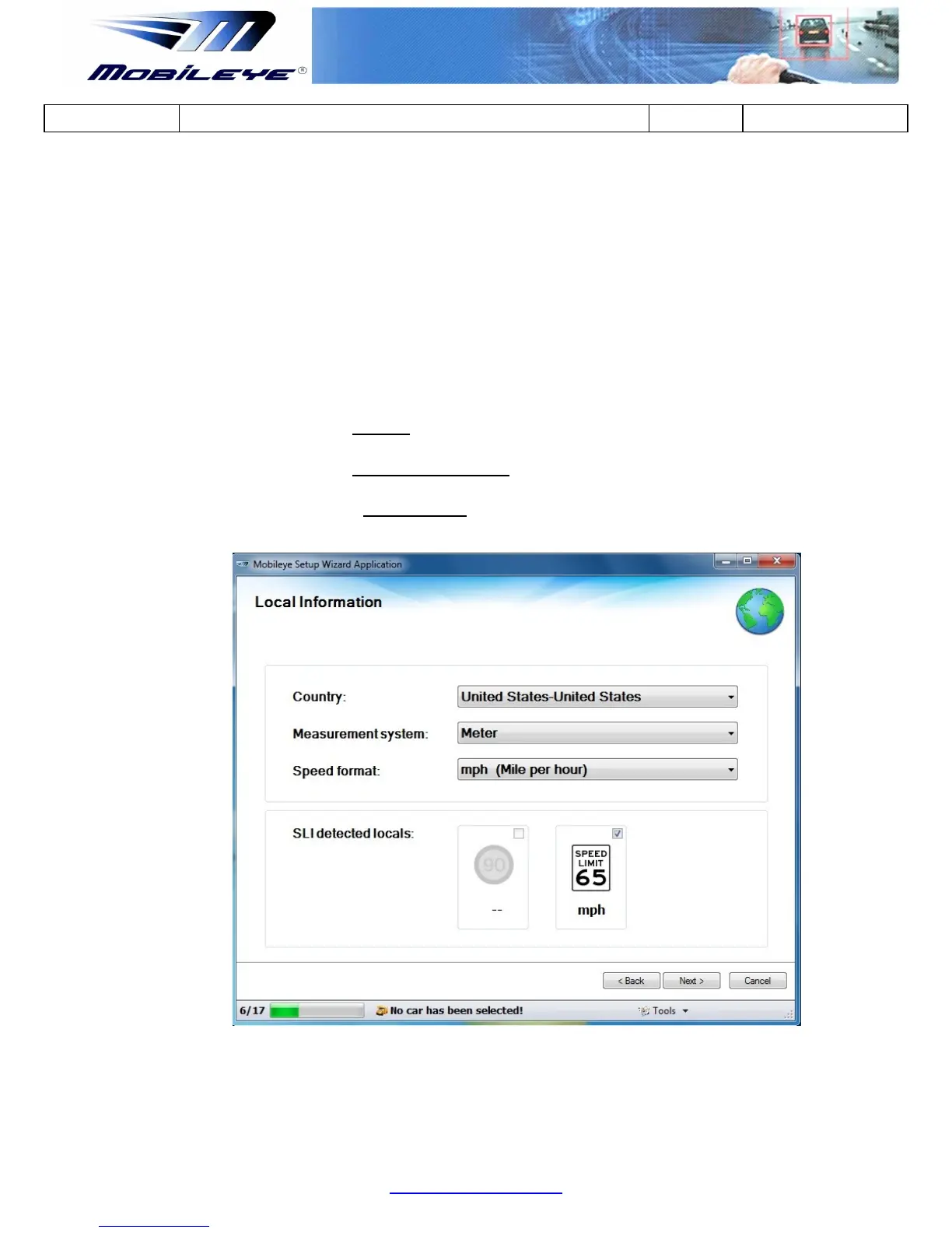 Follow the Mobileye Setup Wizard Instructions to complete the Mobileye 5