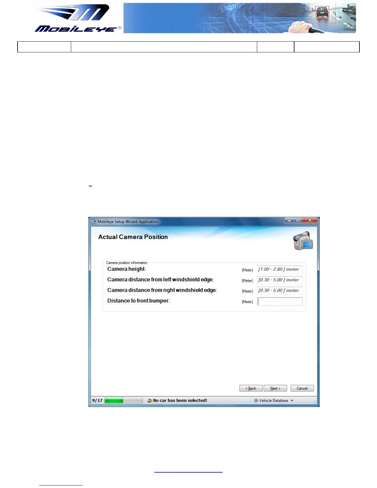 2. Camera distance from Left windshield edge –