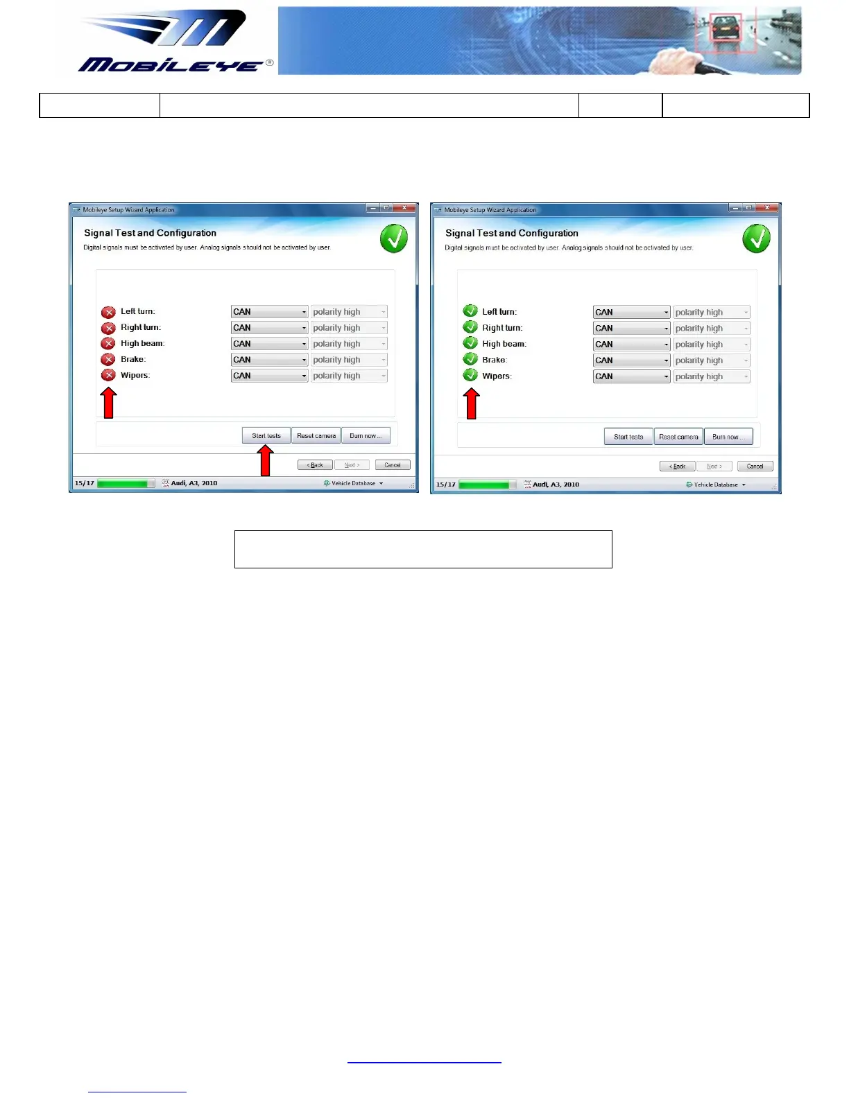 You must check the vehicles signals before leaving the installation site: