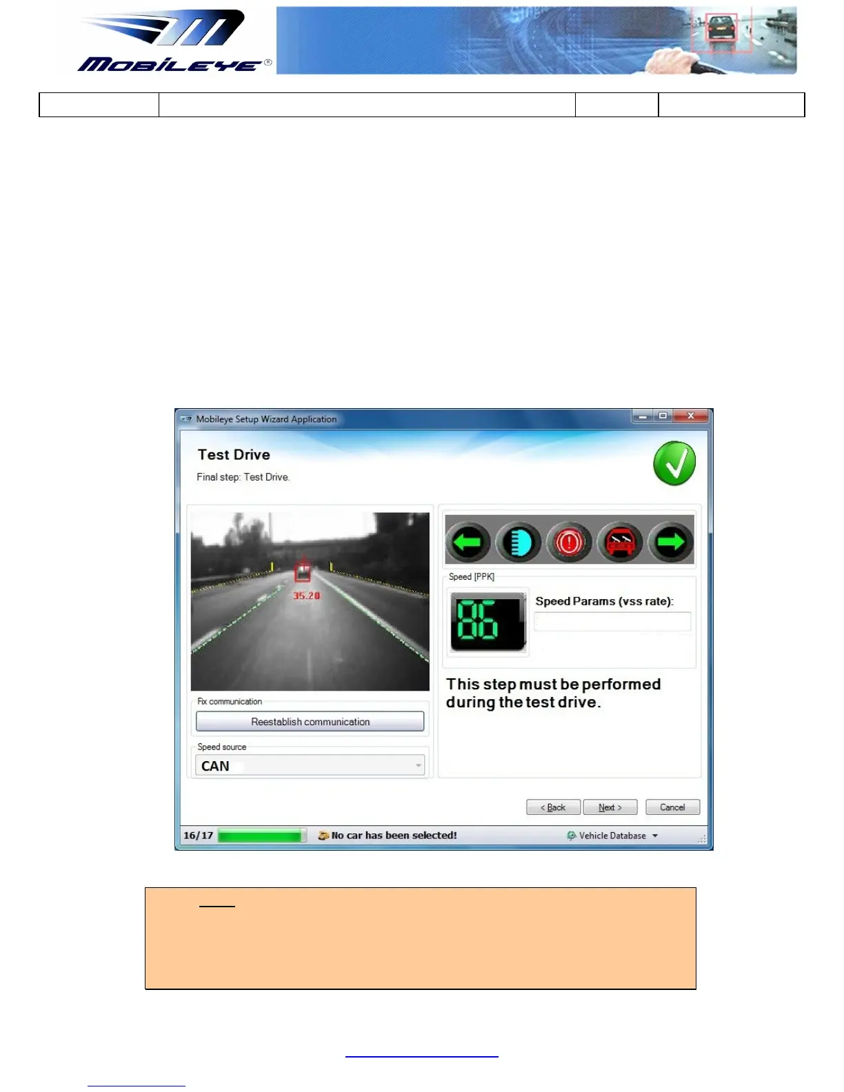 speed indication in the Mobileye Setup Wizard application. Therefore, the Speed