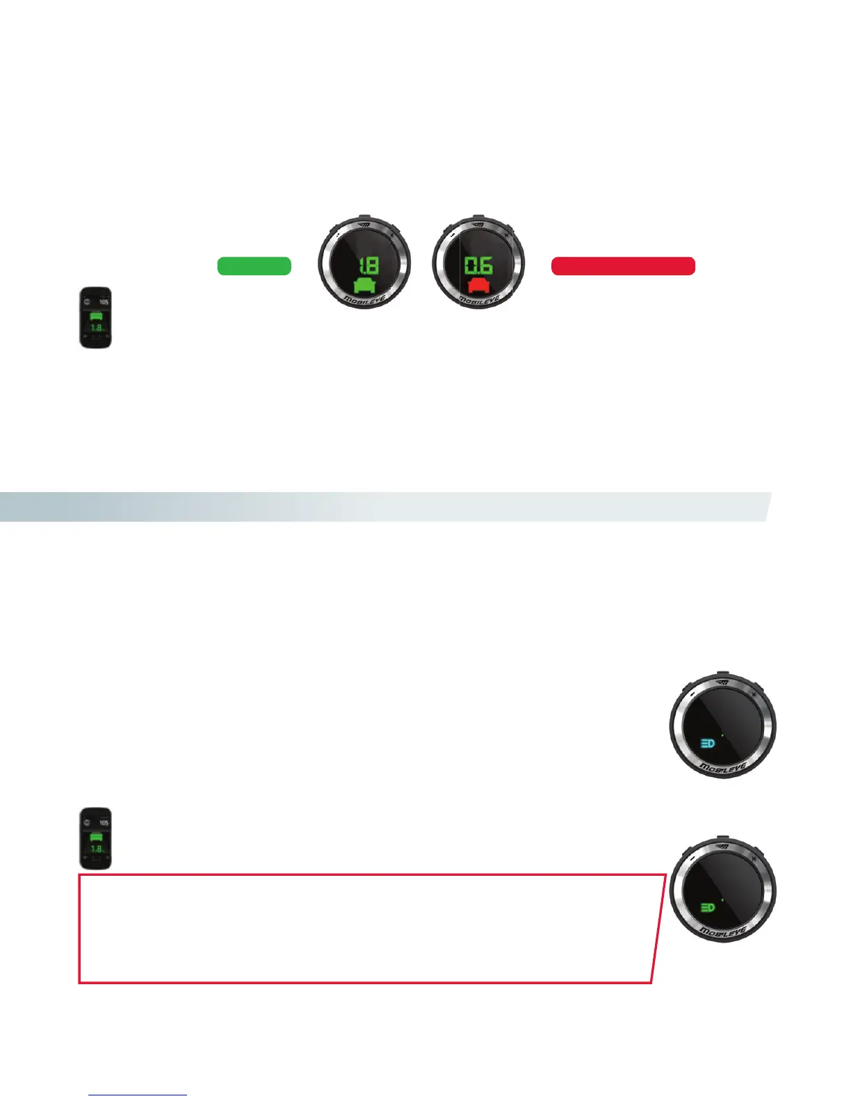 Anche l'avviso HMW sarà visualizzato sull'applicazione smartphone del Mobileye 560/550*.