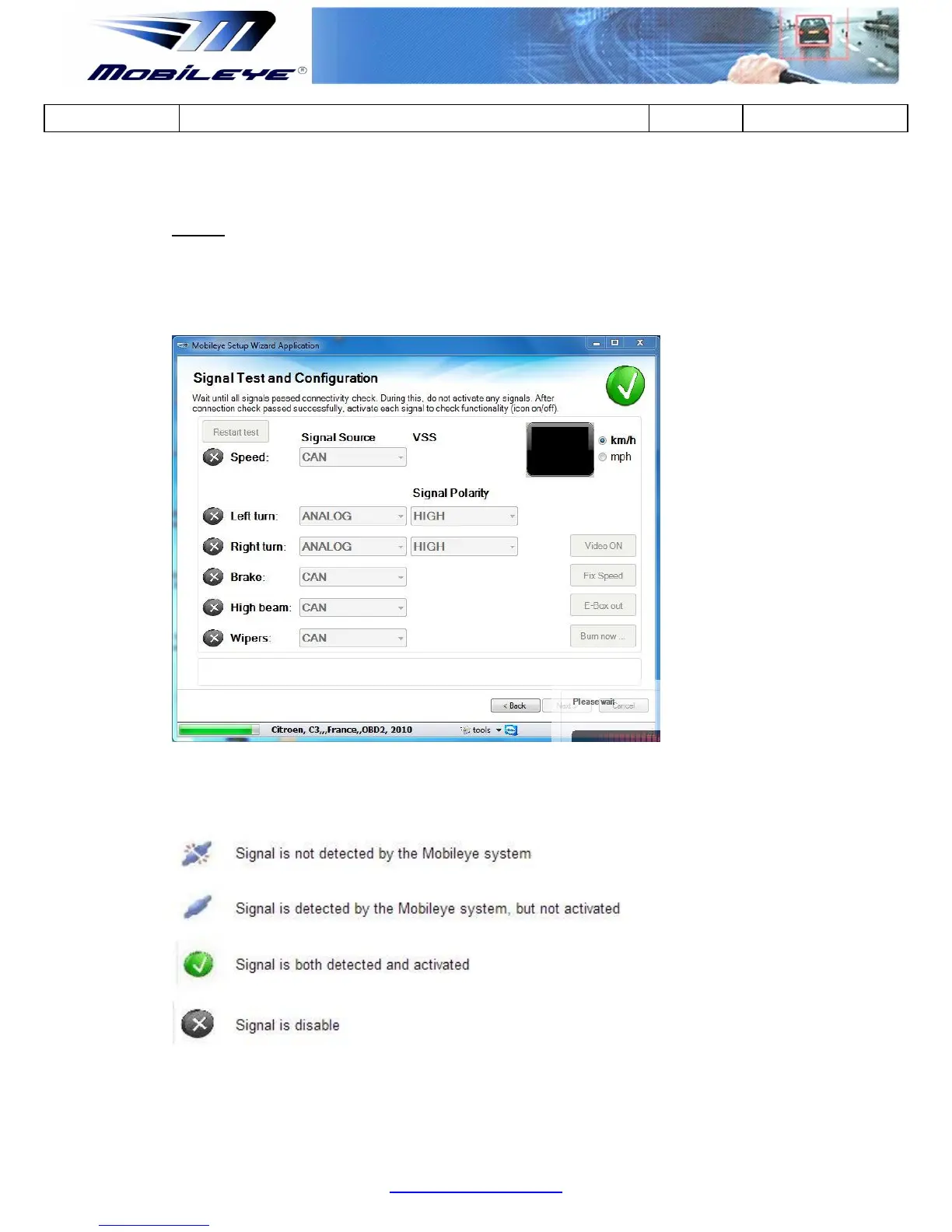 Mobileye 6 - Signal Test & Configuration