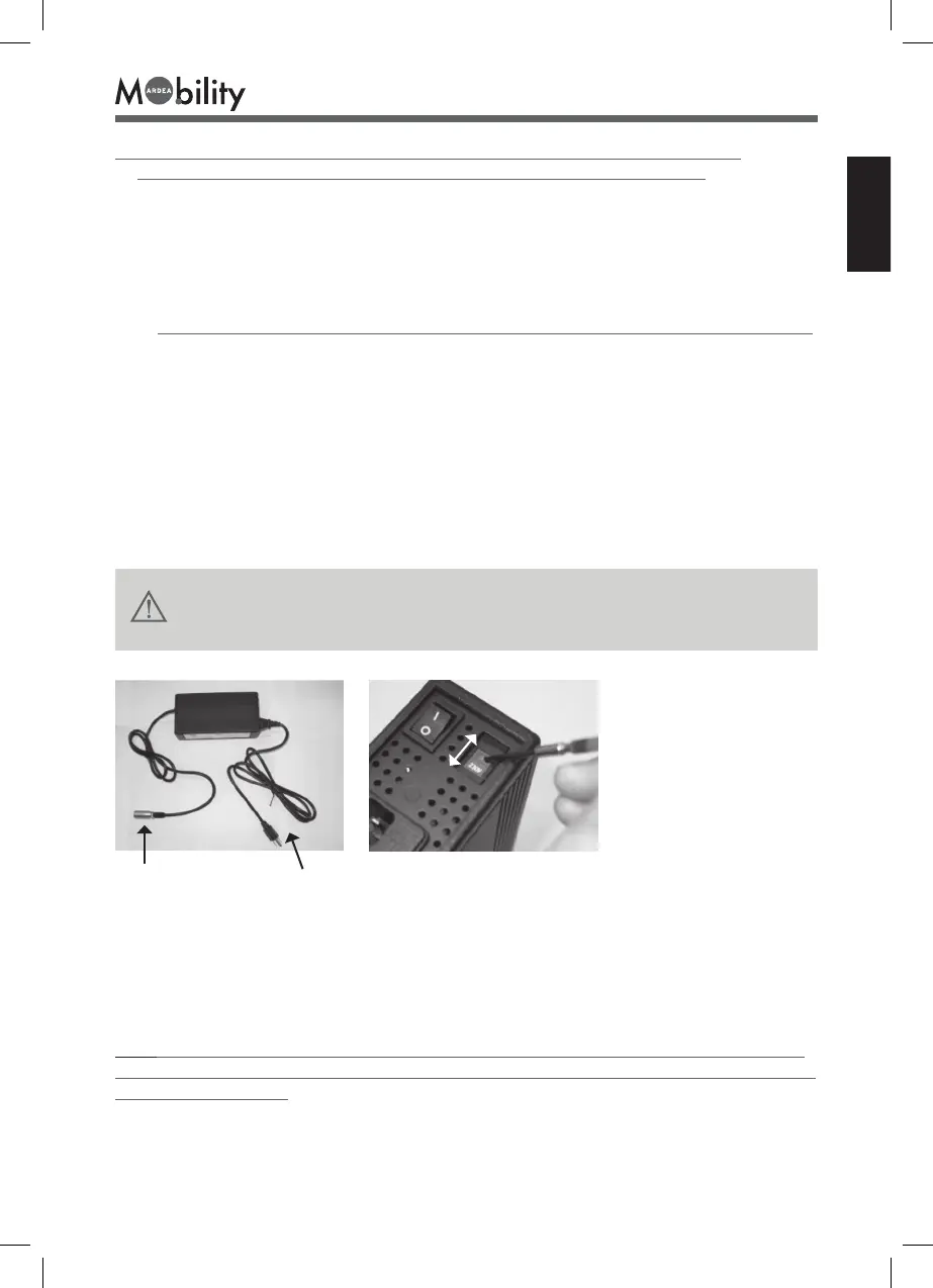 Nota: utilizzare solo il caricabatterie che è stato fornito dal fornitore della carrozzina elettri-