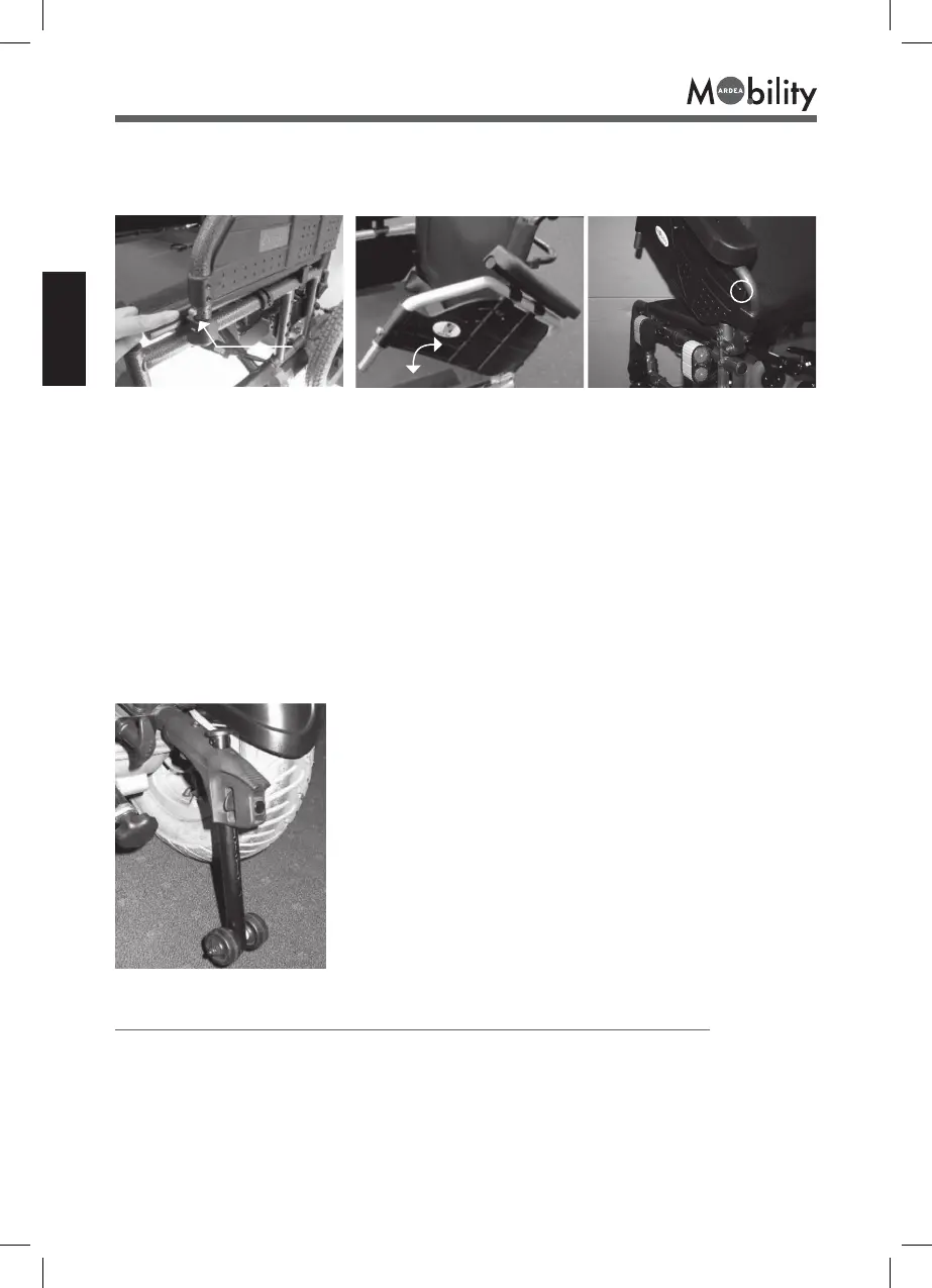 Your folding electric wheelchair has tip-up armrests. To tip up the armrests, press the pin