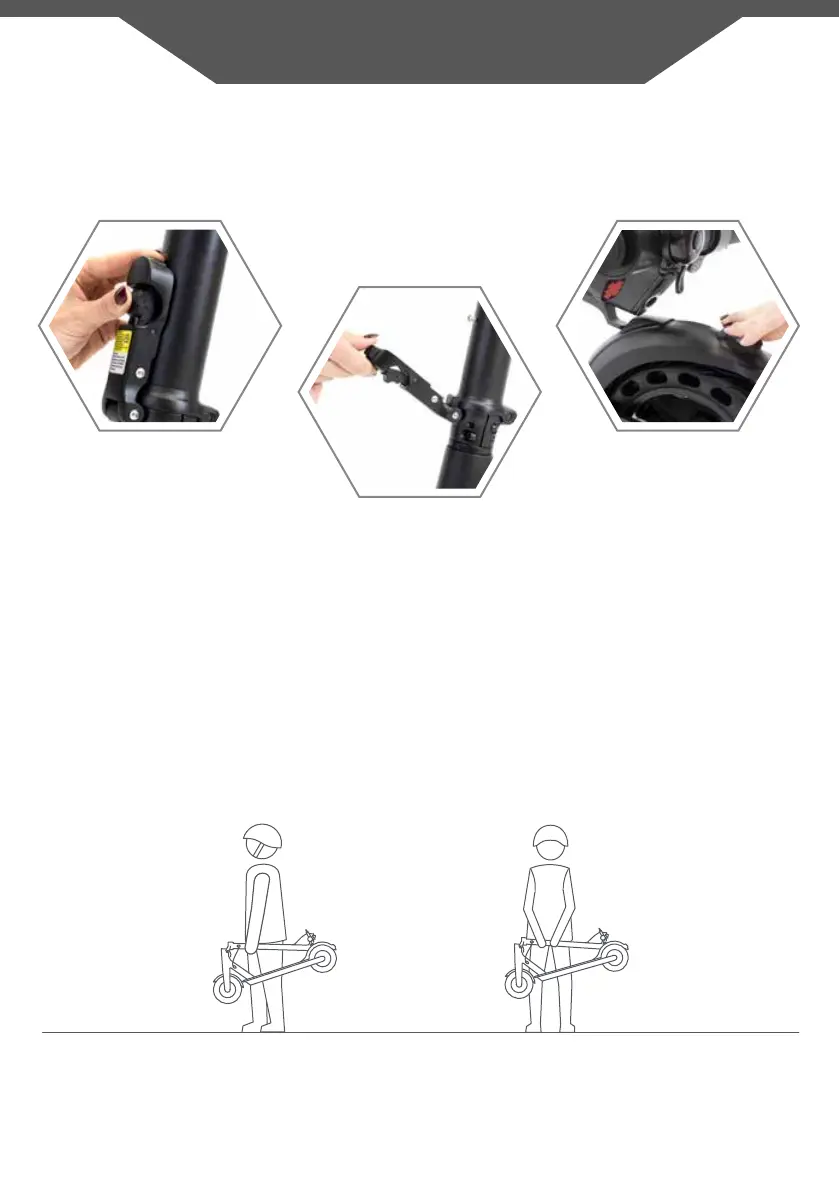 The scooter must be turned off before it is folded.