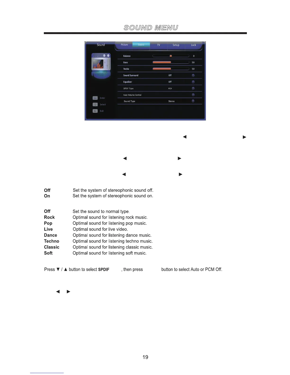 Mobilline TV-C16DDS - Sound Menu