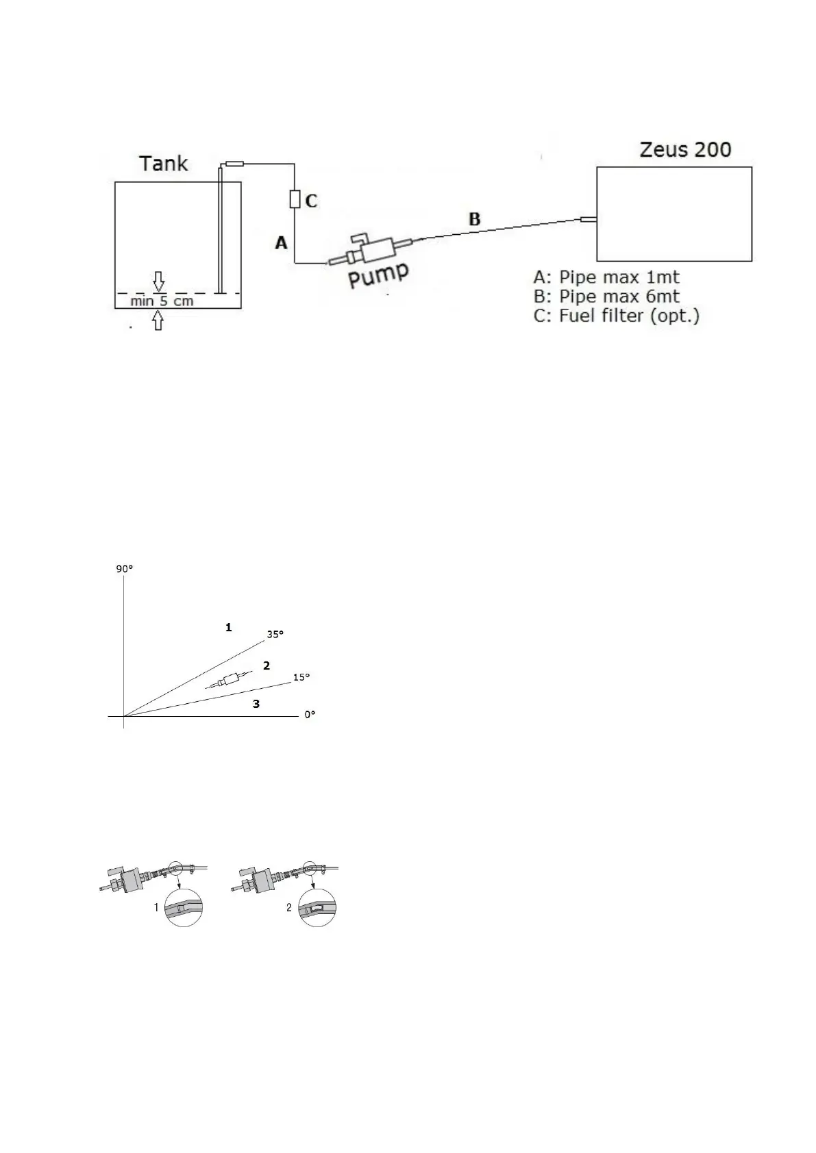 5. The maximum length of the tube B between the pump and the Zeus200 generator must be 6