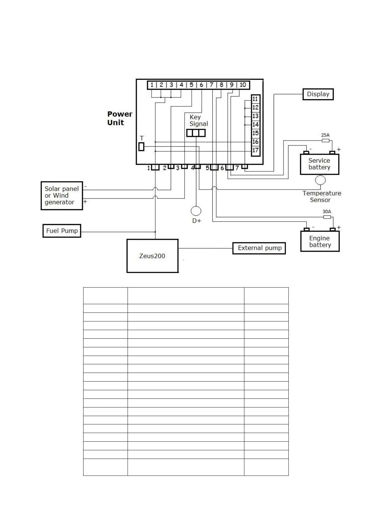 The following figure shows the wiring diagram, with the numbering of the terminals inside the control