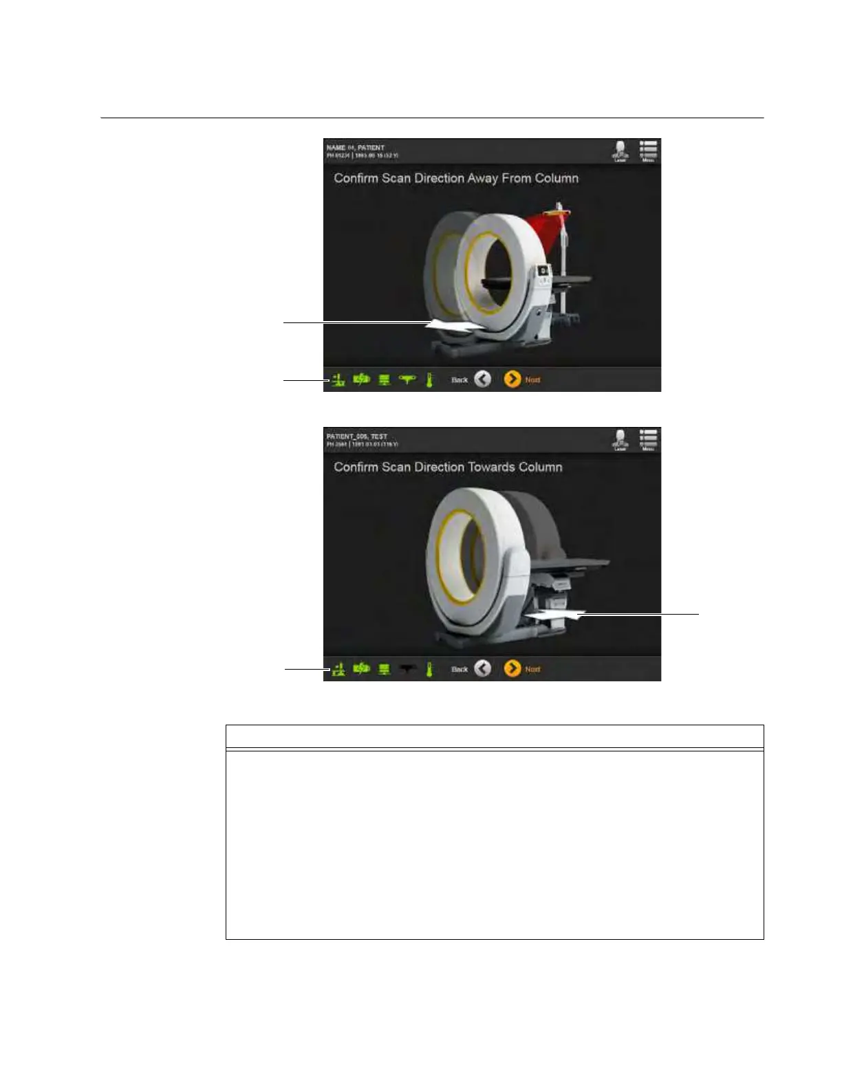 • Confirm Scan Direction Toward Column (Figure 62) shows the system in STB orientation with